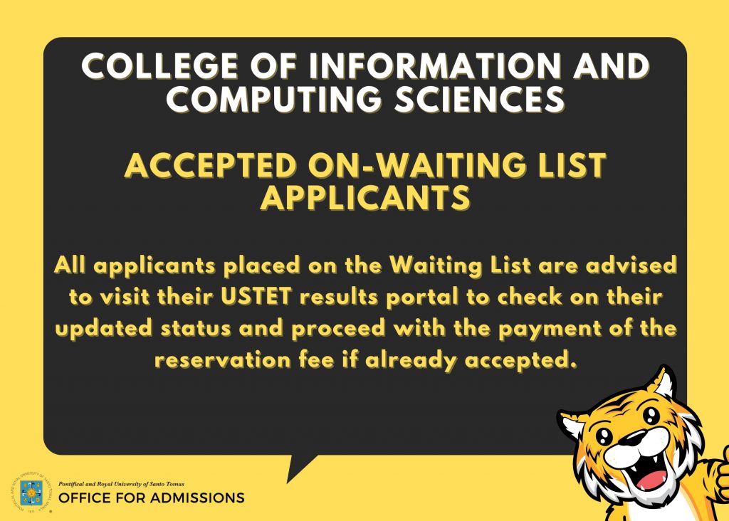 ADVISORY ON COLLEGE OF INFORMATION AND COMPUTING SCIENCES – ACCEPTED ON-WAITING LIST APPLICANTS