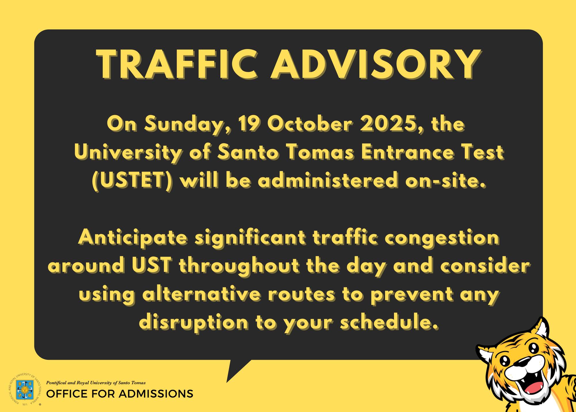 Hello, Future Thomasians! Check out the Manila, Provincial and Satellite testing schedules for #USTET2026 at https://ustet.ust.edu.ph/ Stay tuned for updates on our International Testing Centers.